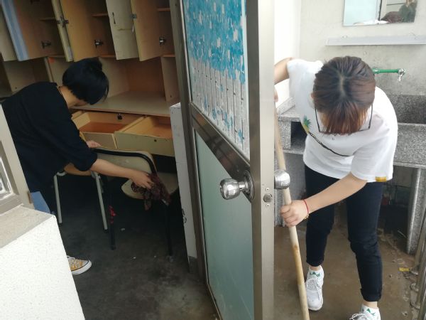 志愿者们积极参与,非常认真的开展打扫。将房间、阳台、卫生间的地面打扫的干干净净,并用抹布认真擦洗寝室的各个角落,如床位、窗台和门窗等,为返校实习生清扫出了一个整齐干净的住宿环境。此次活动是为了促进同学们养成良好的卫生习惯,为毕业生文明离校打下基础。(学生处  吴春红)
