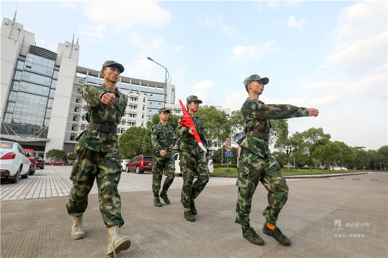 校园国旗护卫队雄姿英发,昂首阔步,走向升旗区域。这是一支“特殊”的队伍,成员均为退伍复学大学生,他们的飒爽英姿,早已成为清晨校园里最亮丽的一道风景线。
