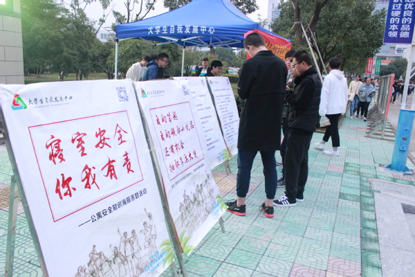 11月13日开始,学生处在一号报告厅门口举办公寓安全知识海报答题活动。