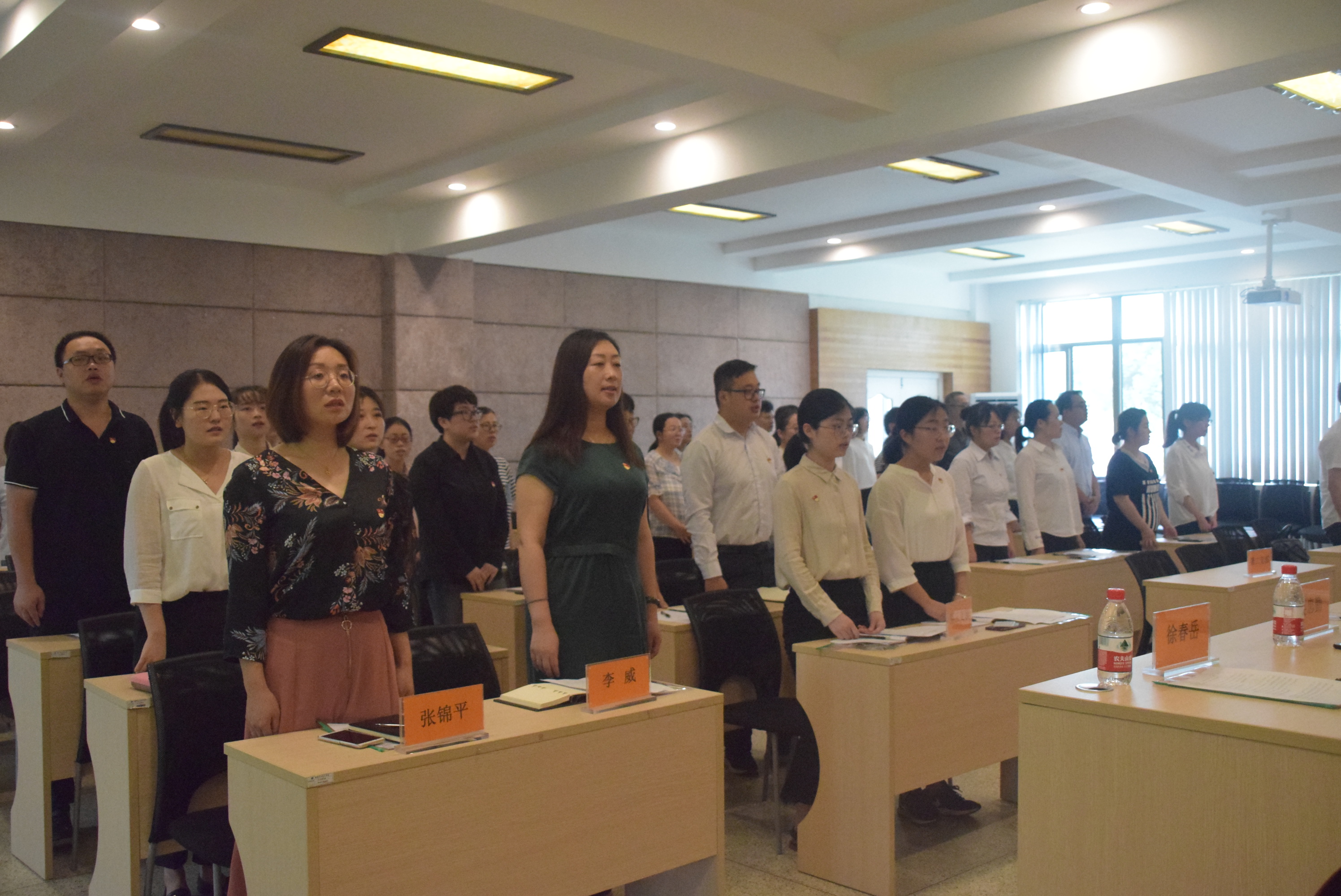 2019年6月26日上午9:00,医学院在实训室多功能厅召开党总支换届选举党员大会。 校党委书记崔戴飞,组织部部长徐浪静,纪检监察室主任张锦平,组织部副部长李威,以及医学院全体党员教师出席了会议。会议由医学院党总支委员,医学院院长姚水洪主持。