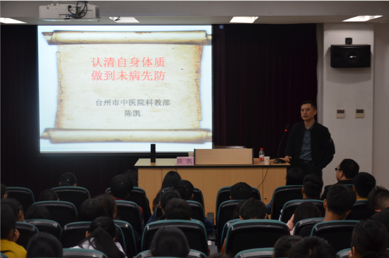 2019年11月7日下午,图书馆3号报告厅,台州市中医院科研教学部主任陈凯和主管中药师杨红燕受邀为医学院18、19级中药学专业学生作“常见中药的鉴别”和“认清自身体质,享受健康生活”主题讲座。
