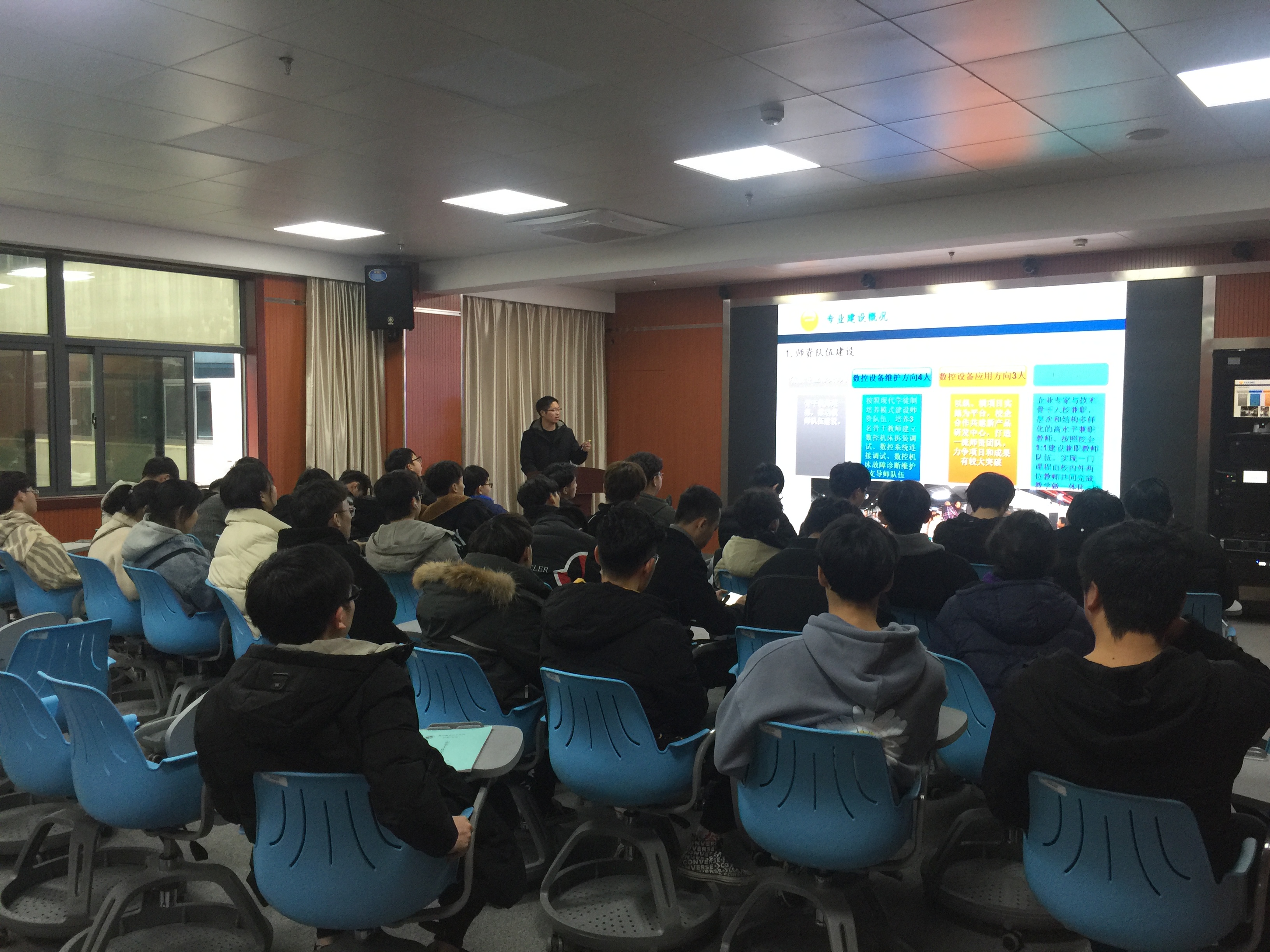 数控设备应用与维护专业主要从专业师资概况、实训室概况、专业人才培养方案、课程设置、学生获奖、顶岗实习、就业签约等方面向专业大二学生作了介绍,着重以近3年专业学生的顶岗实习和就业签约单位为例,针对同学们关心的顶岗实习和就业问题作了较为详细的解答,向同学们说明专业学生的就业去向。