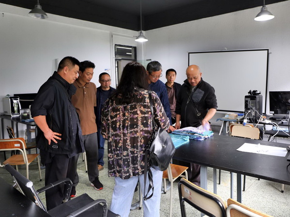 邱兴雄教授就工作站的印染研究项目在印染技术提升到文创产品研发,结合自己的艺术创作经历,用印染技术进行综合材料艺术创作,不断在材料拓展和观念创新与大家做了分享。并结合浙江师范大学相关课程教学情况,现代学生的学情,就专业课程建设、课程形式和内容作了说明,指出相关艺术学科、专业的师生要不断挖掘传统,努力提高自身的艺术审美修养。与会人员就相关问题予以交流学习。