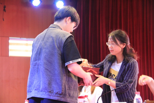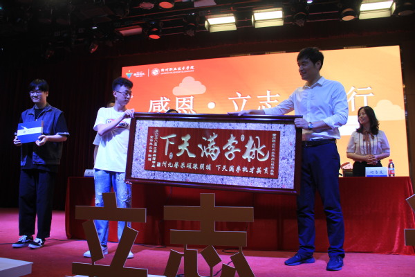 最后毕业生代表与母校互赠礼物,寄托了对彼此的美好祝愿。