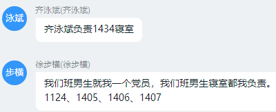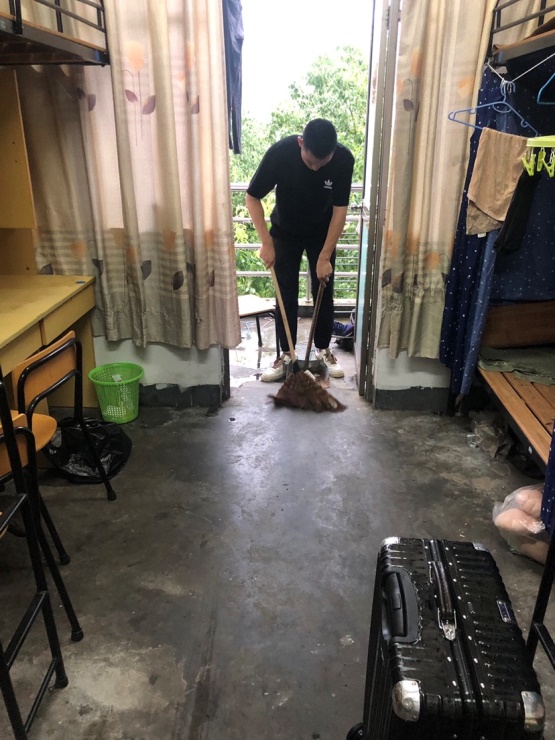 齐泳斌、胡伟超、谢加军帮忙打扫班级寝室卫生。