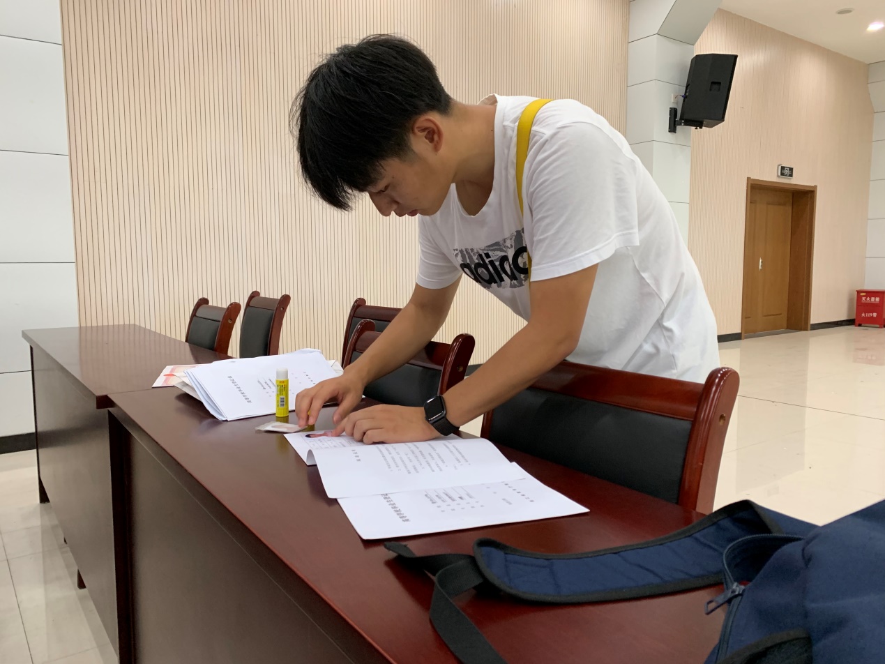 刘国强、徐伟恺、田加伟、冯斌、严雪莲帮班主任分发材料。