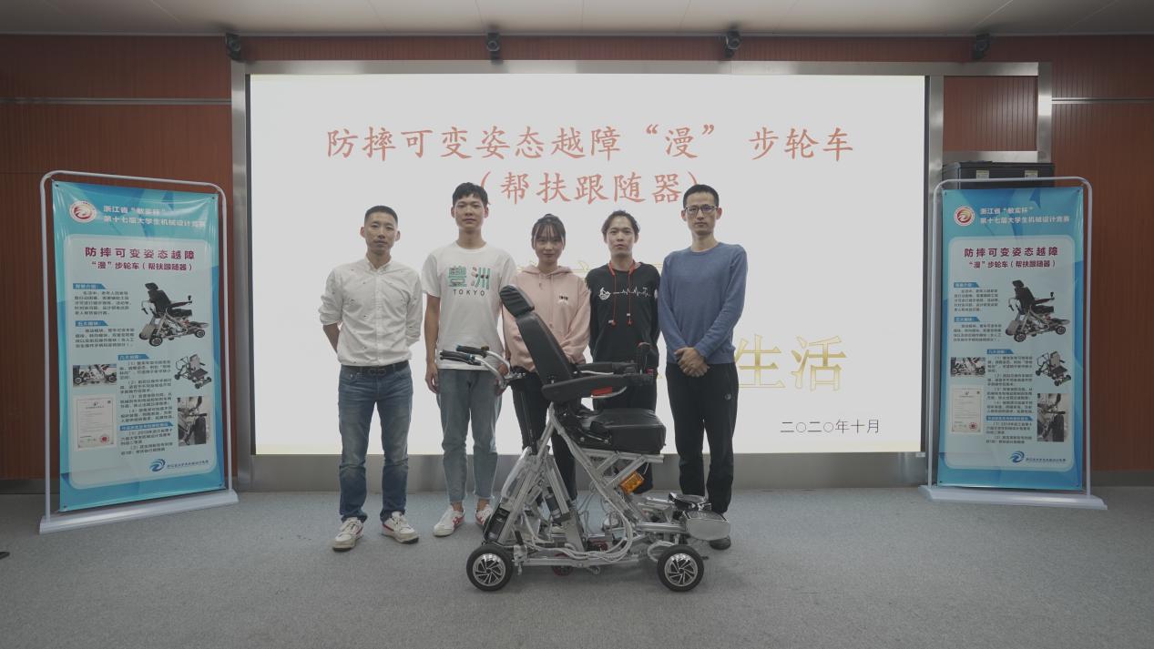 团队一直秉持着初心,持续关注行动不便的老年人群体,渴望通过机电技术的应用,致力于打造创新、实用的行走辅助机械,为这一特殊群体解决居家生活不便的难题,提高老年人生活质量。不断践行“智慧家居、幸福家庭”这一大赛主题的理念。据悉,此次大赛,浙江赛区共向国赛组委会推荐国赛决赛第一阶段评审(初评)作品数量36项。国赛对团队成员来说,又是一次不小的考验。当接到国赛决赛第一阶段评审的通知时,丝毫不敢懈怠。恰逢十一中秋双节长假,时间紧任务重。团队每天在实训室不断的坚持备赛,替代了外出游玩时光,但同学们没有丝毫抱怨。