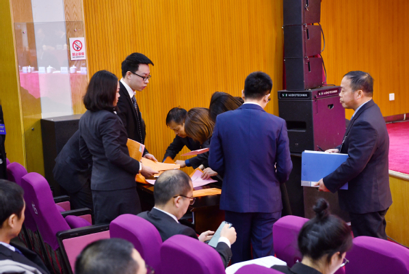 在总监票人和监票人的监督下,到会的101名代表按照要求,认真填写选票,并依次在投票箱前投下了自己庄严神圣的一票。