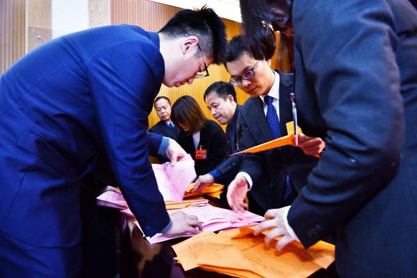 投票结束后,担任监票人和计票人的全体同志立即开始计票工作,并将选举结果报主席团第四次会议审议通过。