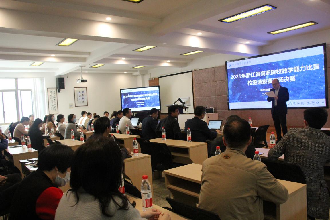 2021年教学能力大赛准备工作受到校领导高度重视,教务处(教师发展中心)适时启动了大赛进程,历经近三个月时间的赛前动员、比赛培训、各二级学院(部)初赛、择优推荐及校外专家网络评审,最后共12支参赛团队入围现场决赛。各教学单位院长(主任)、分管教学副院长(副主任)、未参赛的全体专业主任、课程组主任、市中职学校教师代表全程现场观摩,其他教师通过超星网络直播在线观摩。