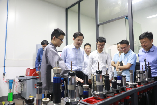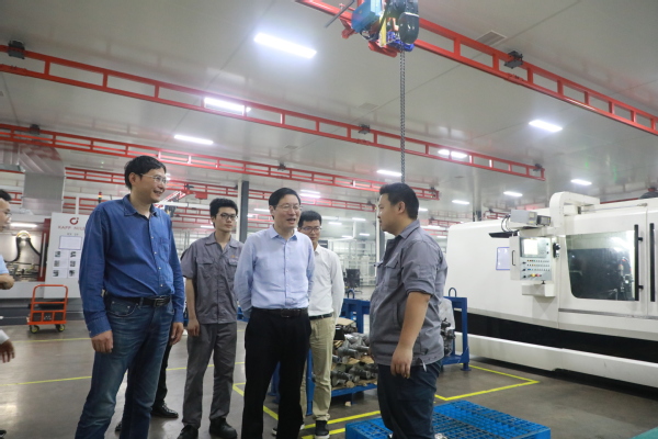 在浙江志高动力科技有限公司的车间,徐须实看望正在进行生产工作的实习生,详细了解了同学们在企业的工作及生活情况,勉励同学们在企业要主动学习技能提升自身竞争力,为企业创造价值、助力家乡衢州的发展、促进中国装备制造进步,在实习中遇到困难要及时和学校反馈。