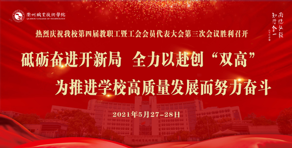 会议强调,2021年是中国共产党成立100周年,也是我校全面实施“十四五”规划、推进“双高”院校建设、追逐更高目标实现更高位次跨越的关键之年。我们要高举习近平新时代中国特色社会主义思想伟大旗帜,深入贯彻习近平总书记对职业教育重要指示精神,全面贯彻落实党的十九大和十九届二中、三中、四中、五中全会和全国、全省、全市教育大会精神,贯彻落实省委十四届八次全会、市委七届九次全会和我校第二次党代会精神,坚持以全力推进“双高”院校建设、全力打造四省边际职业教育“桥头堡”为奋斗目标,致力落实立德树人根本任务,致力打造高水平专业群、高水平“双师”队伍、技术技能人才培养高地,切实提升服务地方发展能力,把“大有可为”的殷切期盼转化为“大有作为”的生动实践,为衢州市建设四省边际社会主义现代化先行市贡献衢职力量。