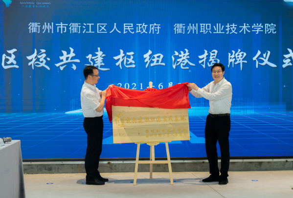 徐须实与徐惠文共同为区校共建枢纽港实践基地揭牌。
