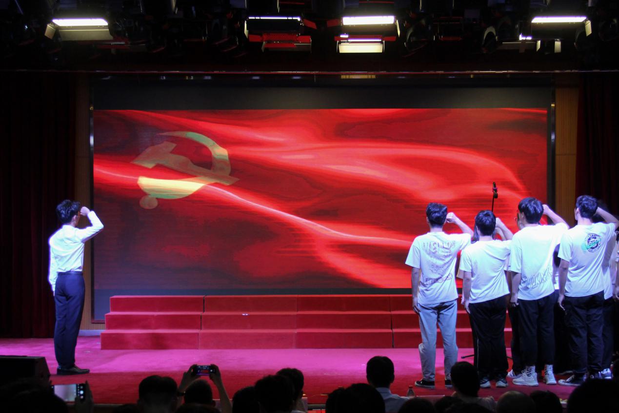 “咚咚咚……”晚会在气势磅礴的信工大鼓《中国龙》中拉开了序幕。《我的中国心》《我相信》《仰望星空》……青年们用真挚的歌声抒发对中国共产党的美好祝福和对伟大祖国的深情热爱,以青春之名向中国共产党百年华诞献礼。