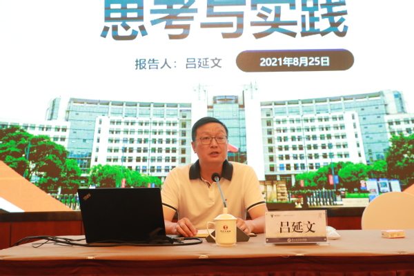 党委副书记、校长吕延文从我国职业教育治理现代化的演进历程、高职院校治理现代化的衡量标准、高职院校治理现代化的路径选择、高职院校治理现代化的实践四个维度出发,作题为《高职院校治理现代化的思考与实践》的专题报告。