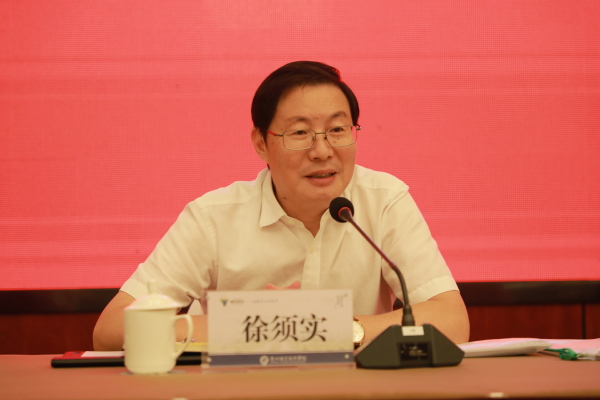 徐须实传达了市委七届十次全会上汤飞帆书记作的题为《实干争先 加压奋进 全力推进四省边际共同富裕示范区建设》的工作报告精神,对会上审议通过的《衢州高质量发展建设四省边际共同富裕示范区行动计划(2021-2025年)》中涉及到我校的内容进行了详细地阐述。