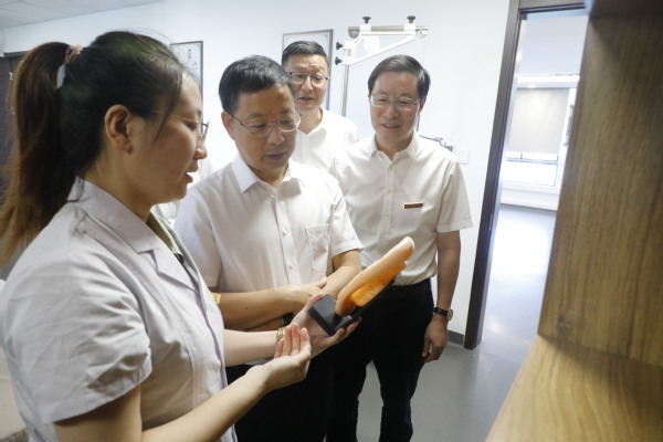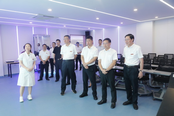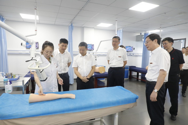 方健忠、张朝雄一行与我校教师代表杨明华、吴宇方亲切交谈,并实地走访了我校桌面式VR教学实训室、VR交互大屏教学实训室、虚拟仿真准备室、居家养老实训室、针灸推拿智慧实训室等教学场所,详细了解学校教学环境、师资队伍建设和学生基本情况等,高度肯定了我校锚定“双高”院校和职教本科建设奋斗目标,服务地方经济社会发展的办学理念和所取得的成绩。