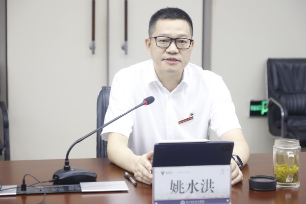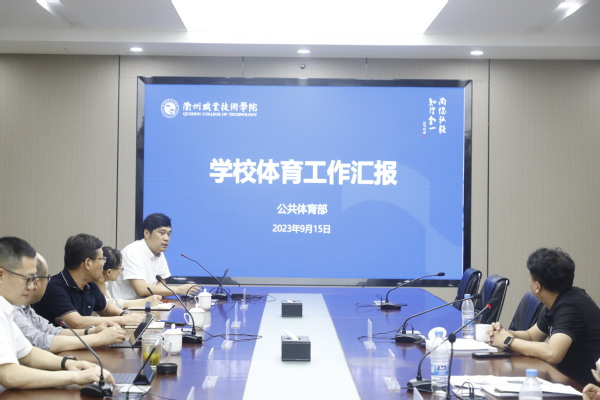 汇报会上,姚水洪对专家组一行的到来表示热烈欢迎,向专家组介绍了学校的建校历史、办学特色。他表示,学校高度重视体育工作,学校体育工作采用“两块牌子、一套班子”,倡导“两馆文化、健康文化”,鼓励学生积极参与体育锻炼。