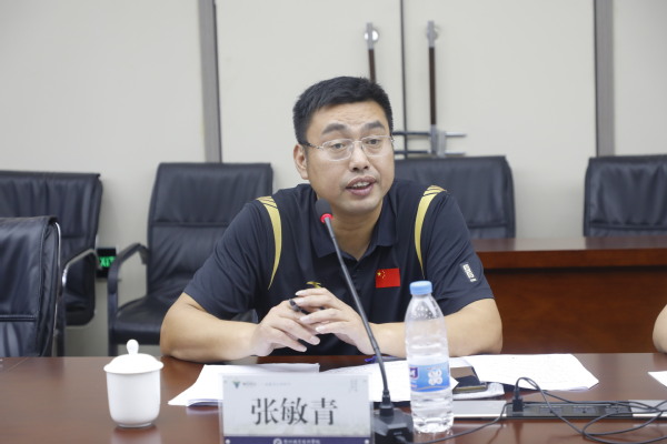 公共体育部主任郭大勇从学校体育工作基本情况、自评情况、展望与建议三个部分对学校体育工作进行了汇报。