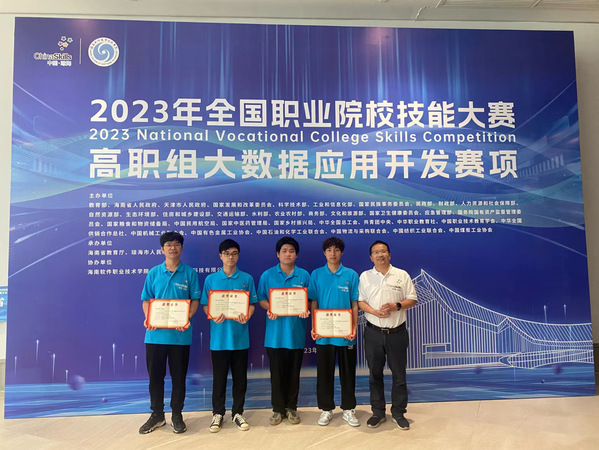 10月23日,2023年全国职业院校技能大赛(高职组)大数据应用开发赛项成功举办。我校信息工程学院教师王张夫、学生朱凯杰、江明晓和王乾组成的队伍(师生同赛、不设指导老师)喜获全国一等奖,实现了学校在全国职业院校技能大赛全国一等奖零的突破。