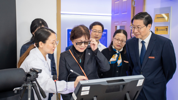 会前,堀内校长一行实地走访了我校共富学院展示厅、大健康实训中心,我校向其展示了在服务地方发展、医护康养高水平专业群建设等方面的情况。