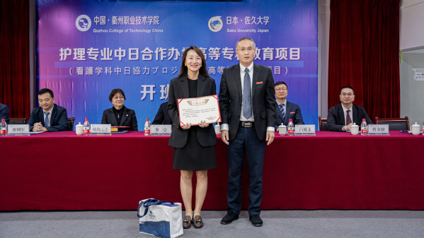 堀内校长表示,希望通过本次中日合作办学,将日本佐久大学专业的护理知识和解决高龄者看护等问题的相关经验措施传授给学生们,助力解决中国在大健康、老龄化时代背景下面临的相关问题。佐久大学将全力配合衢职院护理专业中日合作办学项目的实施,希望双方在深化护理专业建设、护理人才培养的同时,为老年人健康长寿、创造更美好的生活做出贡献。