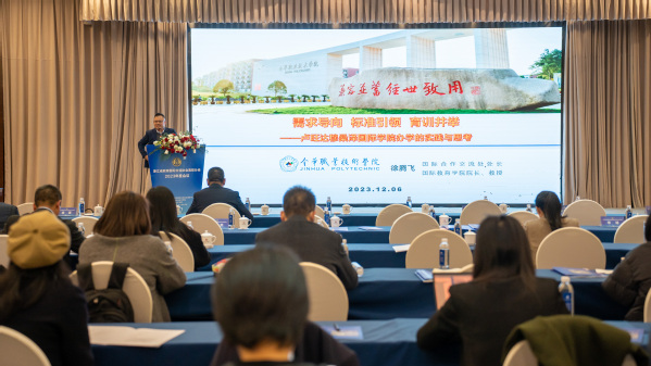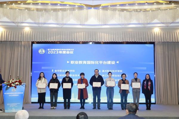 12月6日,浙江省教育国际交流协会高职分会2023年度会议在衢州隆重举行。中国教育国际交流协会常务理事宗瓦,中国教育国际交流协会港澳台办主任金雷,省教育厅国际合作与交流处处长、省教育国际交流协会秘书长蓝晶晶,省教育国际交流协会高职分会会长、浙江机电职业技术学院校长贺星岳,省教育国际交流协会高职分会副会长、浙江经贸职业技术学院校长陈德泉出席,全省40多所职业院校的领导、嘉宾参加。省教育国际交流协会副秘书长陈璐、我校党委书记徐须实致辞。省教育国际交流协会高职分会副会长、浙江商业职业技术学院校长张宝忠主持。