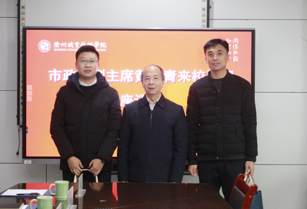 黄伟青充分肯定了我校近年来取得的各项成绩,同时,表扬了王胜、毕少平两位教师在职业技能培训、指导学生竞赛、社会服务等方面所做的工作。他指出,职业教育是培养技术技能人才、促进就业创业创新、推动中国制造和服务实现高质量发展的重要基础,他希望通过市政协平台,吸引更多国内高水平院校高层次人才、团队与衢职院合作,提升学校科研能力,在应用型研究和产学研成果方面能取得更大的突破。