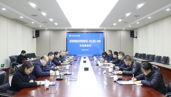 3月15日,嘉兴南洋职业技术学院党委书记、校长王雪亘,党委副书记、副校长钱长根,党委委员、副校长许松明一行来校走访调研。我校党委书记徐须实,党委副书记何百通,党委委员、副校长姚水洪陪同。