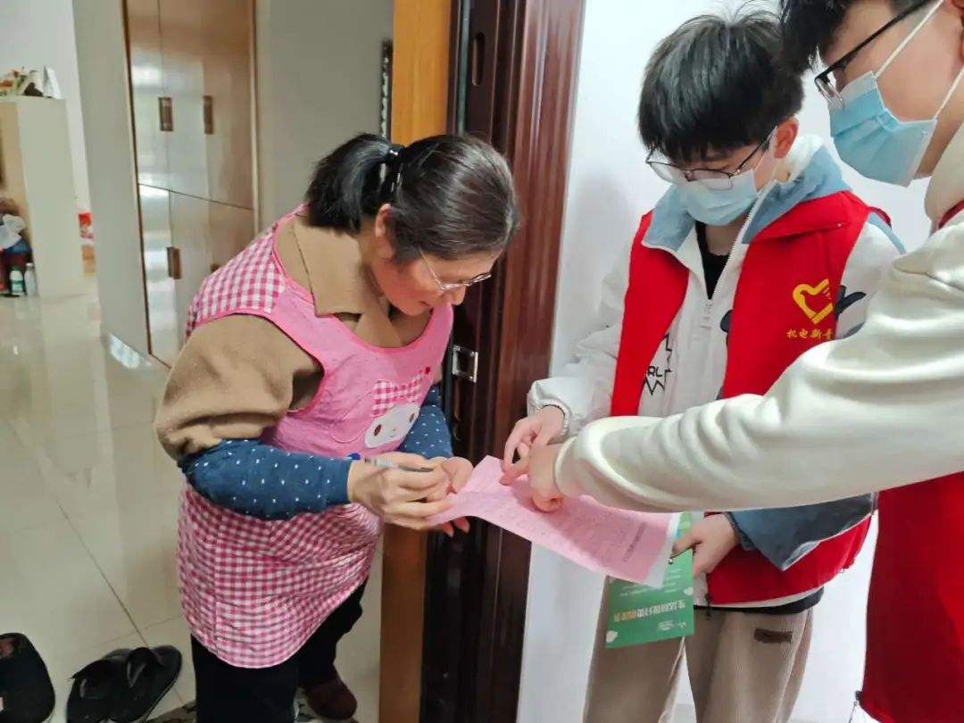 志愿者们走到社区的每一户居民家里,为他们耐心讲解垃圾分类的知识,以及防诈反诈的手段