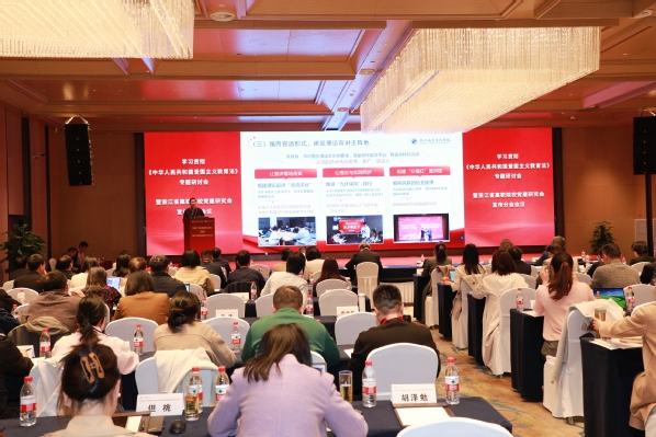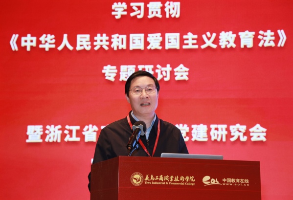 为全面学习领会和贯彻落实《中华人民共和国爱国主义教育法》的丰富内涵和重要精神,进一步深化铸牢中华民族共同体意识教育,引导广大高职院校切实担负起新时代立德树人根本任务,3月21至22日,学习贯彻爱国主义教育法专题研讨会暨浙江省高职院校宣传分会会议在义乌隆重召开。本次会议由浙江省高职院校党建研究会宣传分会、义乌工商职业技术学院主办。我校学校党委书记徐须实,党委委员、宣传部部长孔庆红受邀参加,徐须实作专题报告。