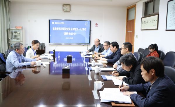 4月3日,省教育科学研究院院长朱永祥、教研员陈晓燕一行到我校调研,校党委书记徐须实,党委委员、副校长姚水洪陪同。