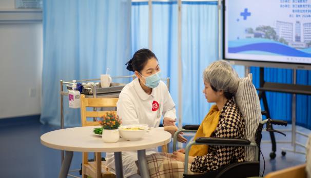 “养老照护”赛项采用单人竞赛模式,比赛内容选取养老机构场景,在1份案例单中,选手完成生活照护、基础照护、康复照护三个模块综合实操和照护方案制定共四个模块的全部工作任务,在贴近真实照护环境下,突出以“照护对象”为中心,重点考核参赛选手的照护方案设计能力、实践操作能力、沟通交流能力。比赛期间,各参赛选手沉着冷静、奋力拼搏,展示了较高的专业技能和职业素养。