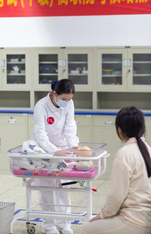 “母婴照护”赛项采用团队竞赛模式,内容包括职业素养测评、照护计划制定、综合照护技能三个模块,综合照护技能模块包括居家和月子中心两个场景,分别含婴幼儿照护和产妇照护两个赛项。在贴近真实照护环境下,突出以“产妇、婴幼儿照护服务”为中心,全面构建学生基于典型工作任务的核心技能、职业素养和人文关怀的岗位胜任力。比赛过程中,参赛选手精神饱满、动作娴熟、操作规范,展现了良好的精神风貌和扎实的专业技能。