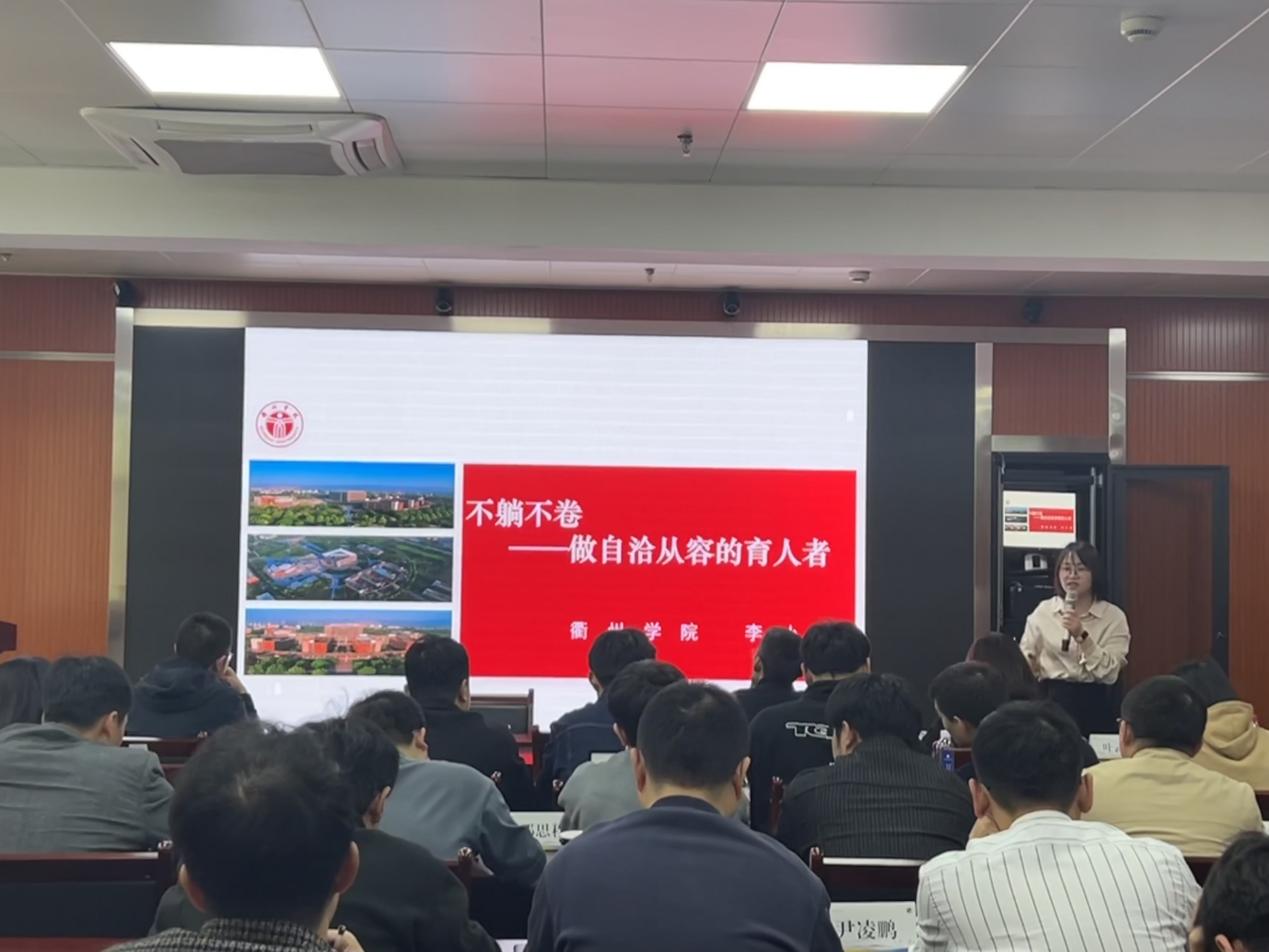 4月10日下午,为进一步提升教师心理健康教育素养,推进教师全员心育培训,切实关注师生心理健康,机电工程学院特别邀请衢州学院学工部副部长李小庆老师开展“不躺不卷——做自洽从容的育人者”主题讲座。