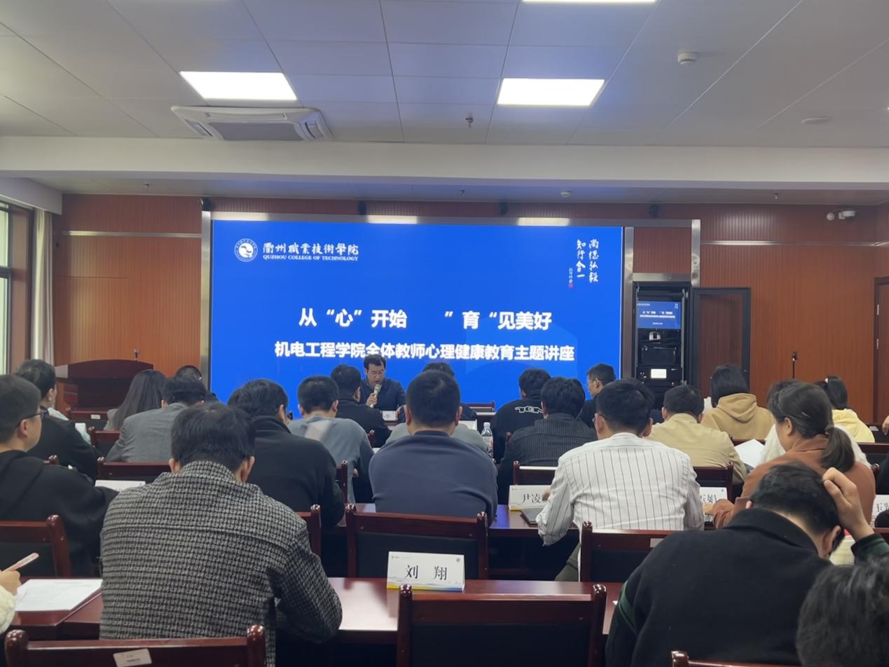 本次讲座是面向机电工程学院全体教师开展的一次心理健康教育专题讲座,旨在进一步普及心理健康知识,促使广大教师以健康的心态、饱满的精神状态,更好地投入到工作和生活中,为学院高质量发展凝聚强大合力。我院将继续加强心理健康教育,让每位教师在生活中做自洽从容的幸福育人者,在工作中做学生健康成长的护航人。