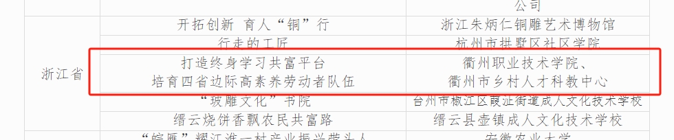 日前,由我校与衢州市乡村人才科教中心联合申报的《打造终身学习共富平台 培育四省边际高素养劳动者队伍》项目获2024年全国新时代“终身学习品牌项目”,这是我校第二次获得该品牌项目殊荣。