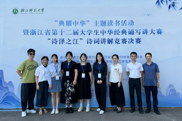浙江省第十二届大学生中华经典诵写讲大赛“诗泽之江”诗词讲解竞赛决赛于7月5日至6日在浙江师范大学举行,来自全省62所高校的155位优秀学子入围此次竞赛决赛,决赛竞赛流程包括诗词知识闭卷机考、诗词讲解和现场问答等环节,入围选手围绕经典诗词的意蕴与内涵,切磋比拼诗词讲解能力和学识积累。经过连续两天的比拼,我校决赛选手23中药1班陈淑烁(指导老师袁锦贵、张皓鸣)、23摄影2班连晨(指导老师闫姗、龚慧兰)获得一等奖并入选国赛,22设计1班丁思仪(指导老师张皓鸣、倪剑)、23应化1班竺黎丽(指导老师袁锦贵、张皓鸣)获得二等奖。另外,22护理9班丁佳怡(指导老师张皓鸣、袁锦贵)、23护理7班林俊(指导老师龚慧兰、闫姗)获得三等奖。