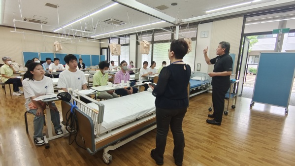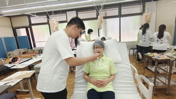 佐久大学盛冈正博理事长等养老护理专家作“佐久市保健医疗活动的历史”、“养老护理管理”等专题报告,研学团学习了解了日本医疗养老体系的历史、发展、现状和未来,与佐久大学介护专业学生共同参加介护综合演习课。