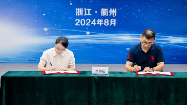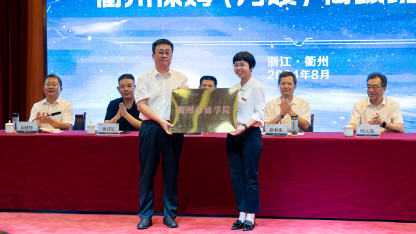 在衢州保姆提质赋能推进会上,我校与重庆市农广校签订农民素质培训合作协议。徐浪静、杨召军代表双方签约。