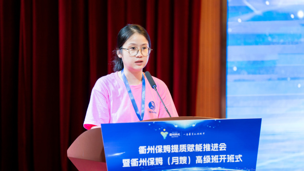 徐利水讲话,并宣布本次培训班开班。他表示,希望通过举办衢州保姆(月嫂)高级班开班式,为各位学员带来属于保姆这份职业的社会认同感和荣誉感。本次培训班学员报名要求高,各方面的标准严格,各位学员定能学有所得、学有所成、学有所用,让衢州保姆成为市场上的金字招牌。衢州保姆学院是每位学员的家,希望学员们通过培训增强对岗位的归属感,认真学习,顺利考取保姆月嫂的技能等级证书,相关部门和企业将为学员们做好就业推荐服务。