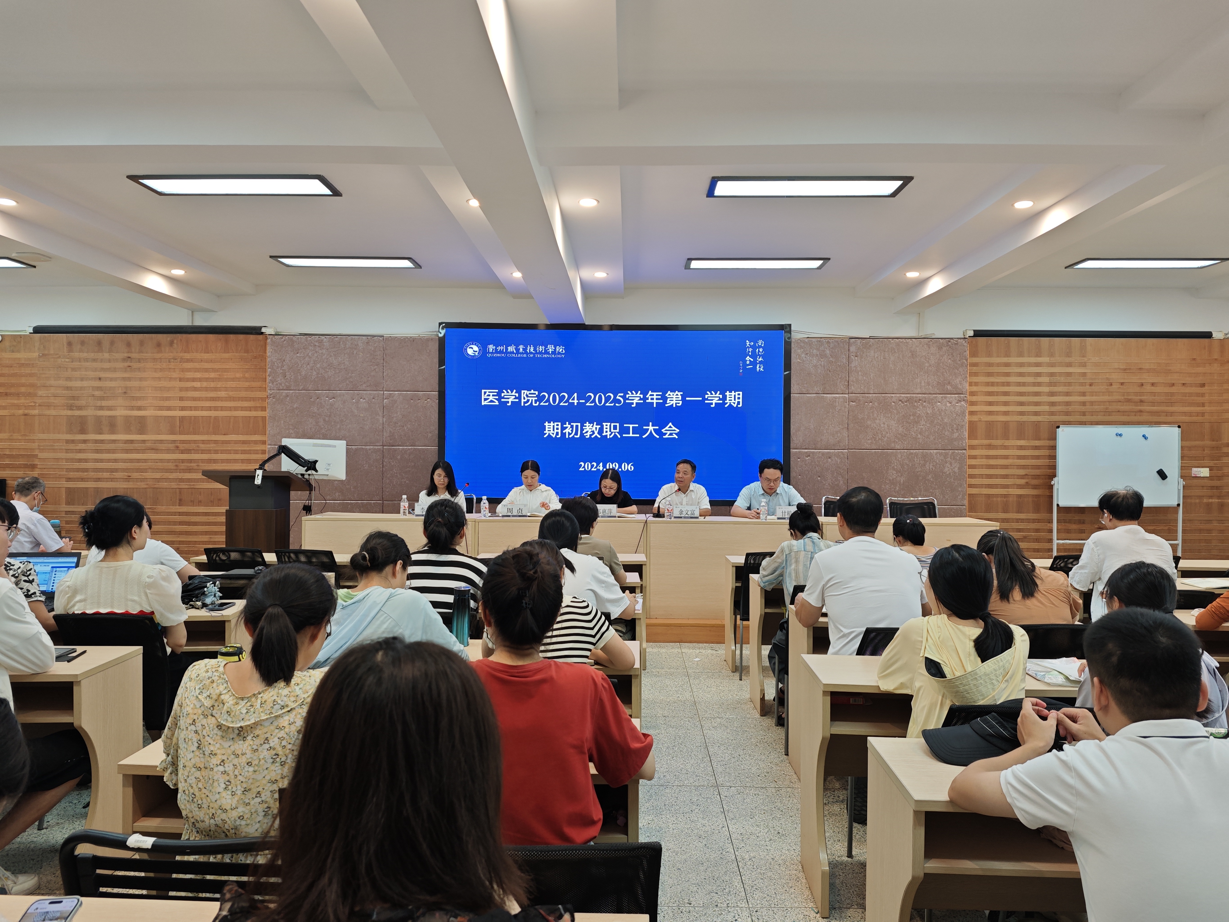 为确保新学期各项工作起好步、开好局、谋好篇,引领全院教职工以崭新面貌迎接新学期,9月6日上午,医学院在实训楼一楼多功能厅召开2024-2025学年第一学期期初教职工大会,会议由党总支书记余文富主持,全体教职工参会。