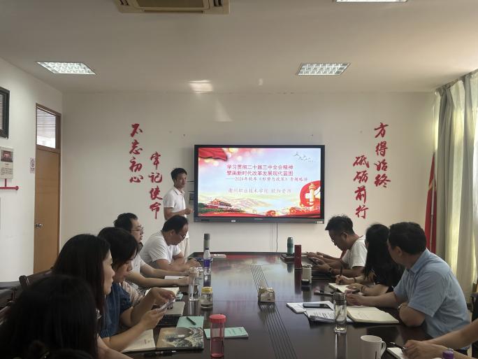 为推动党的二十届三中全会精神融入课堂,提升思政课教学质量,9月9日下午,马克思主义学院在行政楼801会议室组织开展新进教师试讲暨第一次集体备课会。本次活动由院长邵方益主持,全体思政教师参加。