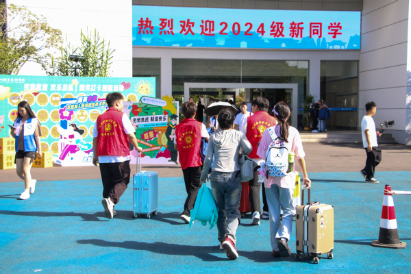 学校工作人员、学生志愿者以及各学院的老师们以饱满的热情为2024级新同学办理入学手续。他们耐心地为新生解答各类入学问题,坚守在各个新生报到点提供热情服务。