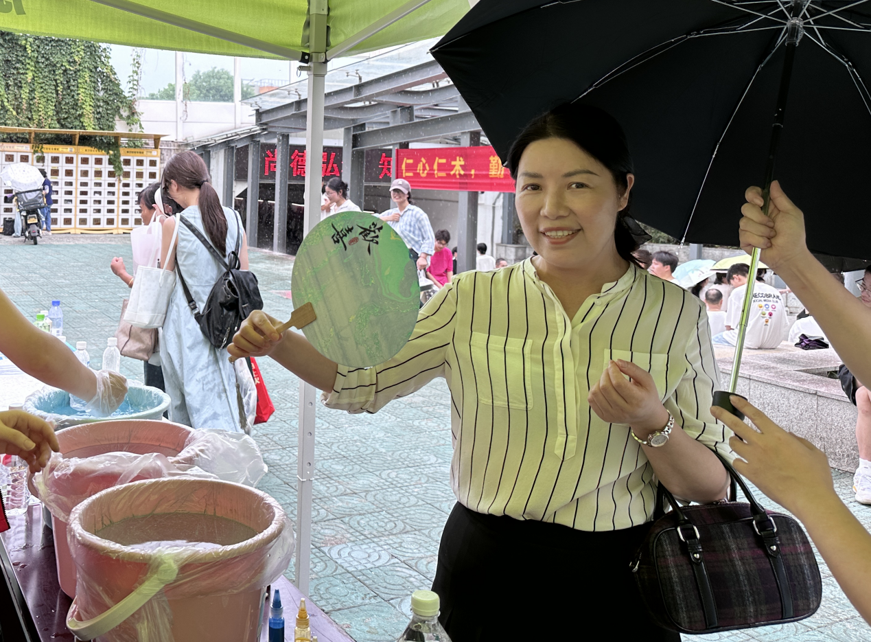 新生漆扇DIY活动现场人气火爆。看着一枚枚色彩斑斓的手工漆扇,在自己手中诞生,新生们笑逐颜开。凝聚着非遗文化和个性创意的小小漆扇,也将为新生们即将展开的大学生活,平添一抹亮色。