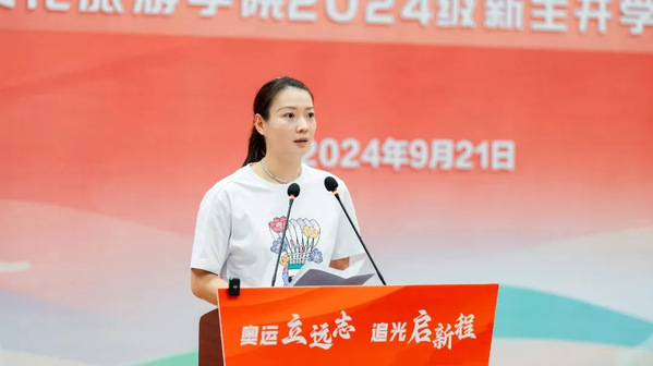 黄雅琼以“以奥运启开学之序,用青春燃梦想之志”为主题,用“坚持”“团队”“拼搏”三个关键词,分享了自己从8岁接触羽毛球,受训10年后首次代表国家队参加国际赛事的经历,讲述了自己克服畏难情绪、直面挑战、战胜挫折、超越自我,最终在2024巴黎奥运会为国争光,实现全满贯的光辉历程,鼓励青年学生们传承奥运精神,坚持梦想,团结合作,奋力拼搏,追求卓越,不负韶华。
