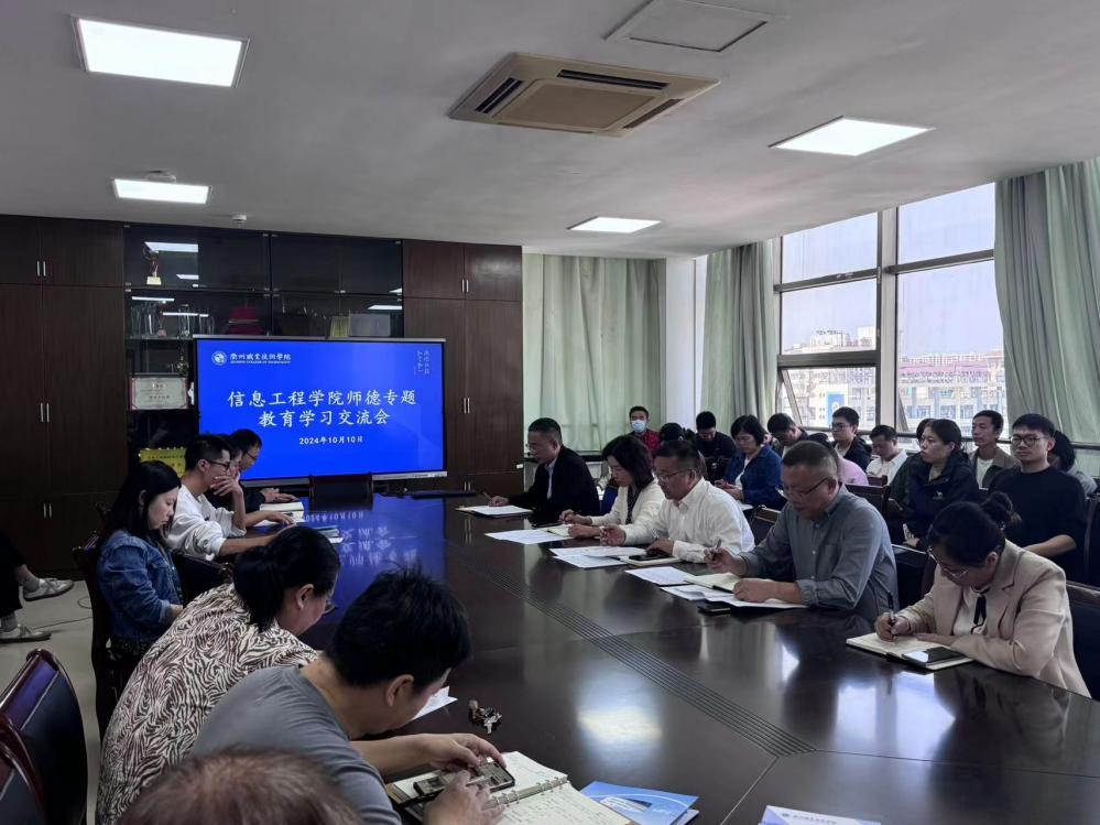 10月10日,信息工程学院召开秋季师德专题教育学习交流会,党总支书记廖建平主持会议,院长马文龙总结讲话,学院全体教师参加会议。