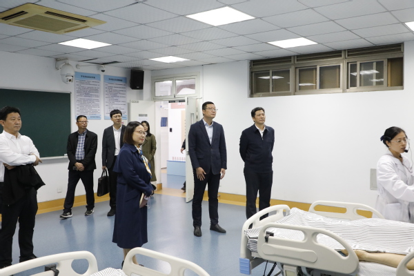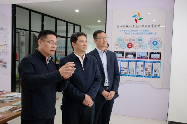 吕亮一行实地调研了共富学院、工业互联网实训中心、医护康养实训中心,详细了解我校科技研发、成果转化、服务地方、专业群建设等情况。