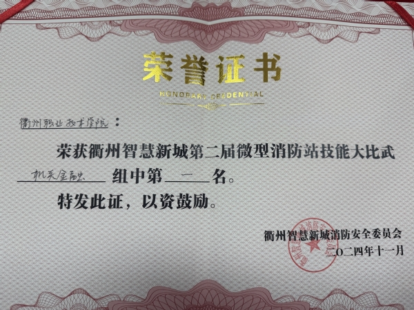 喜报!衢职院代表队荣获衢州智慧新城第二届微型消防站技能大比武第一名