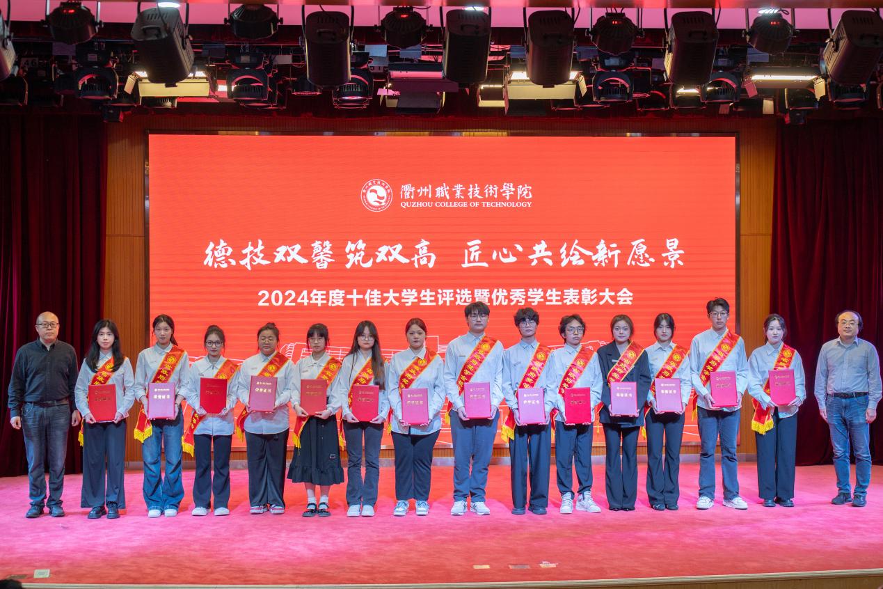大会对过去一年取得优异成绩的学生集体和个人进行表彰,与会领导为获奖代表颁奖,包括国家励志奖学金185人、国家级学生技能(科技)竞赛25项、浙江省政府奖学金140人、省级学生技能(科技)竞赛一等奖赛项30项、省级学生个人荣誉称号2项、校级优秀学生奖学金1345人、校级学生个人荣誉称号805项、校级双优班11个。